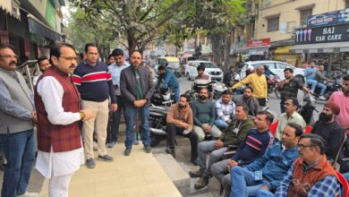 परिवहन विभाग की दुकानों पर छापेमारी के विरोध में व्यापारियों ने किया प्रदर्शन