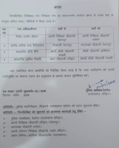 (फिरोज अहमद) हरिद्वार। रेलवेज पुलिस जीआरपी उत्तराखंड में प्रशासनिक स्तर पर बड़ा फेरबदल किया गया है। जारी आदेश के अनुसार कई निरीक्षक और उपनिरीक्षकों का तत्काल प्रभाव से स्थानांतरण कर दिया गया है। इस बदलाव को विभागीय कार्यप्रणाली को और मजबूत करने की दिशा में अहम कदम माना जा रहा है। निरीक्षक राजीव चौहान को प्रभारी निरीक्षक जीआरपी देहरादून से हटाकर प्रभारी निरीक्षक जीआरपी लक्सर नियुक्त किया गया है। वही उपनिरीक्षक सतीश चन्द्र घिल्डियाल को जीआरपी देहरादून से थानाध्यक्ष जीआरपी देहरादून की जिम्मेदारी सौंपी गई है महिला उपनिरीक्षक प्रीति सैनी को प्रभारी चौकी जीआरपी रुड़की से चौकी जीआरपी ऋषिकेश भेजा गया है। सहायक उपनिरीक्षक सुशील तिवारी को थाना जीआरपी हरिद्वार से प्रभारी चौकी जीआरपी रुड़की नियुक्त किया गया है।