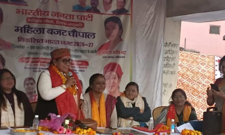 (इमरान देशभक्त) रुड़की। भाजपा महिला मोर्चा की प्रदेश अध्यक्ष रूचि भट्ट के निर्देशानुसार भारतीय जनता पार्टी महिला मोर्चा, जिला रुड़की द्वारा कार्यक्रम संयोजक जिला अध्यक्ष महिला मोर्चा नीलकमल शर्मा व सहसंयोजक मंडल अध्यक्ष सुनीता सैनी द्वारा बजट चौपाल के रूप में भारत सरकार की केंद्रीय वित्त मंत्री निर्मला सीतारमण द्वारा लोकसभा में प्रस्तुत सरकार के केंद्रीय बजट के महत्वपूर्ण विषयों की जानकारी दी गई। पंचायत घर कृष्णानगर शफीपुर में आयोजित कार्यक्रम में महिला मोर्चा के पदाधिकारीयों व नवनियुक्त महिला मोर्चा की मंडल अध्यक्षों व कार्यकर्ताओं की गरिमामई उपस्थिति रही। कार्यक्रम को मुख्य वक्ता के रूप में श्रीमती बिमला नैथानी, सदस्य राज्य महिला आयोग रही व कार्यक्रम की अध्यक्षता नीलकमल शर्मा जिलाध्यक्ष महिला मोर्चा जिला रूड़की द्वारा की गई। मुख्य वक्ता व कार्यक्रम अध्यक्ष के अलावा महिला मोर्चा की प्रदेश उपाध्यक्ष श्रीमती रोमा सैनी, प्रदेश मिडिया सहसंयोजक श्रीमती सावित्री मंगला, पूर्व अध्यक्ष प्रतिभा सिंह चौहान, वैजयंती माला व सुभाष नगर मंडल के मंडल अध्यक्ष गुरजिंदर सिंह आदि ने संबोधित करते हुए केंद्र की मोदी सरकार की ओर से प्रस्तुत बजट की उपलब्धिताओं के बारे में जानकारी देते हुए वक्ताओं द्वारा बताया गया कि इस बार का बजट देश को विश्व की तीसरी अर्थव्यवस्था बनाने और सन् 2047 तक विकसित भारत बनाने के मोदी सरकार के संकल्प को पूरा करने के लिए एक महत्वपूर्ण कदम साबित होगा। कार्यक्रम का शुभारंभ भारत माता व अपने महापुरुषों के चित्रों पर माल्यार्पण व दीप प्रज्वलित करके व वन्दे मातरम् से किया गया।अन्त में कार्यक्रम राष्ट्रीय गान के साथ सम्पन्न हुआ। कार्यक्रम में मंडल अध्यक्ष रामनगर सोनिया सैनी, गीता कार्की, वीरमती यादव, मंजू रावत, ममतेश चाहल, तृप्ति कंसल, अनुराधा, पुष्पा ऐठानी, संगीता सैनी, सुषमा, गीता तोमर, सावित्री, राधा मित्तल सविता, कविता रावत, कल्पना थपलियाल, कुसुम, नीलम सैनी, पुष्पा शर्मा, बिना कन्याल, संतोषी राणा, इंदु भट्ट,मालती सैनी, गीता सालार, सविता, सविता नेगी आदि महिलाओं ने भाग लिया।