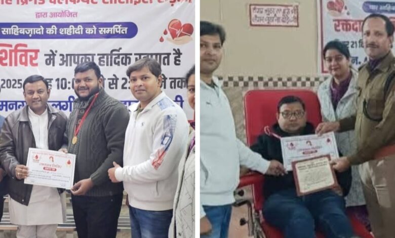 शहीद भगत सिंह ब्रिगेड वेलफेयर सोसाइटी द्वारा किया गया रक्तदान शिविर का आयोजन, एसपी देहात ओर पूर्व मेयर ने रक्तवीरों का किया सम्मान