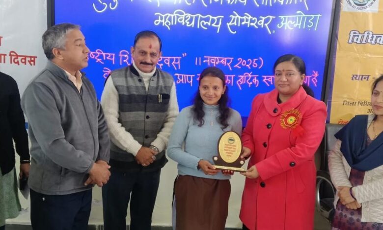 (राजेश कुमार) अल्मोड़ा। उत्तराखण्ड राज्य विधिक सेवा प्राधिकरण नैनीताल के निर्देशानुसार एवं अध्यक्ष जिला विधिक सेवा प्राधिकरण अल्मोडा़ श्रीकांत पाण्डेय के मार्गदर्शन में शचि शर्मा सचिव जिला विधिक सेवा प्राधिकरण अल्मोड़ा द्वारा “राष्ट्रीय शिक्षा दिवस” के अवसर पर दूरस्थ क्षेत्र स्थित हुकुम सिंह बोरा राजकीय महाविद्यालय सोमेश्वर, राजकीय उच्चतर माध्यमिक विद्यालय पच्चीसी व ग्राम- धौलाड़ (सोमेश्वर) में विधिक जागरूकता शिविरों का आयोजन किया गया। शिविरों का आरम्भ नालसा थीम गीत (एक मुठ्ठी आसमान) चलाकर किया गया।उपस्थित विद्यार्थियों व ग्रामीणों को मौलिक अधिकार के रूप में मुफ्त व अनिवार्य शिक्षा का अधिकार, गुणवत्तापूर्ण, वैज्ञानिक व तकनीकी शिक्षा का महत्व, महिला शिक्षा व सशक्तिकरण,नालसा हेल्पलाइन नंबर 15100 व आगामी 13 दिसम्बर 2025 को आयोजित राष्ट्रीय लोक अदालत आदि के विषय में जानकारी दी गई व पंपलेट वितरित किए गए।राजकीय उच्चतर माध्यमिक विद्यालय पच्चीसी में “शिक्षा का अधिकार और सशक्तिकरण” व “शिक्षा के माध्यम से उज्जवल कल का निमार्ण” विषयों पर निबंध, भाषण, वाद- विवाद व पोस्टर निमार्ण प्रतियोगिताओं का आयोजन किया गया व महाविद्यालय के विद्यार्थियों द्वारा “शिक्षा का महत्व” व “बेटी बचाओ बेटी पढ़ाओ” विषयो पर नुक्कड़ नाटक प्रस्तुत किये गये। शिविरों में अधिकार मित्र उपस्थित रहें। सचिव जिला विधिक सेवा प्राधिकरण द्वारा थाना सोमेश्वर व तहसील सोमेश्वर में संचालित लीगल एड क्लिनिकों में विजिट किया गया व अधिकार मित्रों के कार्यो की समीक्षा की गई तथा आवश्यक दिशा निर्देश दिए गए।