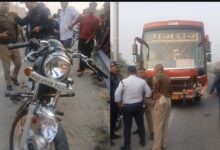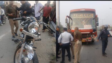 बस चालक ने मारी बुलेट पर टक्कर, बाल-बाल बची बुलेट चालक की जान