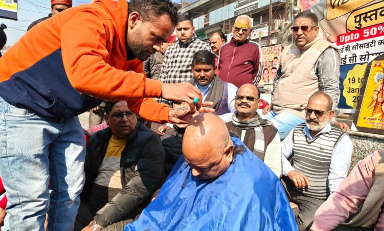 कांग्रेस कार्यकर्ताओं ने सिर मुंडवा कर शंकराचार्य अविमुक्तेश्वरानंद के साथ अभद्रता पर विरोध जताया