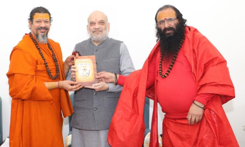 अखिल भारतीय अखाड़ा परिषद अध्यक्ष श्रीमहंत रविंद्रपुरी महाराज एवं निरंजन पीठाधीश्वर स्वामी कैलाशानन्द गिरि महाराज ने की गृहमंत्री अमित शाह से मुलाकात