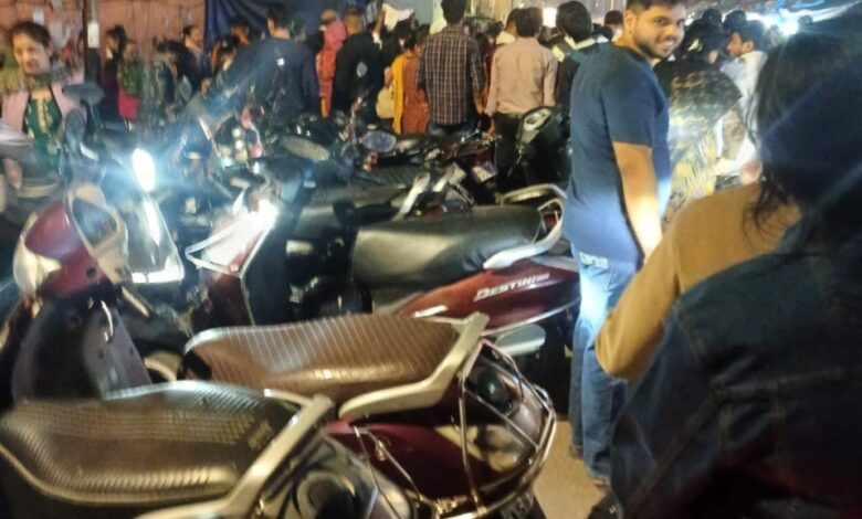 सड़कों पर दोनों ओर दुपहिया वाहनों की बनी पार्किंग श्रद्धालुओं के लिए फजीहत