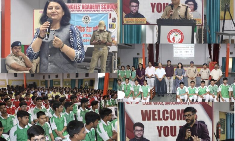 (नीटू कुमार) हरिद्वार। भारतीय जागरूकता समिति हरिद्वार एम जिला विधिक प्राधिकरण हरिद्वार द्वारा शनिवार को बहादराबाद एंजल्स एकेडमी एक विधिक जागरूकता शिविर का आयोजन किया गया। जिसमें जिला विधिक प्राधिकरण हरिद्वार एवं ट्रैफिक पुलिस हरिद्वार का पूर्ण सहयोग रहा। वहीं उक्त कार्यक्रम में स्कूल के कक्षा 9 से 12 तक के छात्राओं ने प्रतिभा किया और कार्यक्रम में बच्चों को नशा, साइबर क्राइम, ट्रैफिक लॉ के बारे में विस्तार पूर्वक जानकारी दी गई। बच्चों को वहीं पर दूसरी तरफ जिला विधिक प्राधिकरण के बारे में विस्तार पूर्वक बताया गया। कार्यक्रम में हाई कोर्ट के अधिवक्ता एवं भारतीय जागरूकता समिति के अध्यक्ष ललित मिगलानी ने बच्चों को साइबर क्राइम एवं संविधान के बारे में जानकारी दी। ट्रैफिक उप निरीक्षक पंकज जोशी ने बच्चों को ट्रैफिक के बारे में विस्तार पूर्वक बताया एवं ट्रैफिक नियमों के प्रति जागरूक किया। जिला विधिक प्राधिकरण की सचिव एवं सिविल जज सीनियर डिवीजन श्रीमती सिमरनजीत कौर कार्यक्रम की मुख्य अतिथि के रूप में बच्चों को संबोधित करते हुए जिला विधिक प्राधिकरण के बारे में विस्तार पूर्वक बताया एवं बच्चों को ड्रग्स के बारे में सचेत करते हुए बताया कि समाज में बढ़ रहे नशे को रोकने में जागरूकता का बड़ा ही योगदान है। कार्यक्रम में स्कूल वाइस प्रिंसिपल, एम स्कूल कॉर्डिनेटर पूनम चौहान एम आलोक जी ने समिति की सराहना की एम। कार्यक्रम को बच्चों के हित में बताया। उक्त कार्यक्रम में दीपक पंवार, अर्चना लुहांनी, अनीता, सचिन वर्मा आदि उपस्थित रहे।