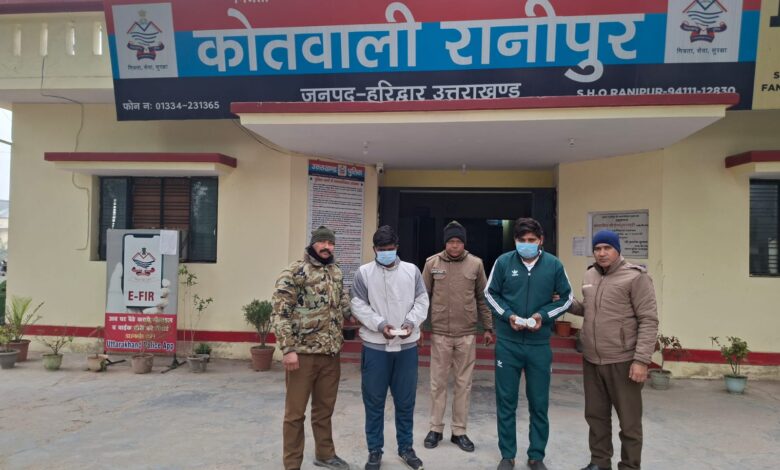 वरिष्ठ पुलिस अधीक्षक प्रमेन्द्र डोबाल के स्पष्ट निर्देशों पर जनपद में नशा तस्करी के खिलाफ विशेष अभियान चलाया जा रहा है। इसी क्रम में रविवार को कोतवाली रानीपुर पुलिस ने छापेमारी व सघन चेकिंग अभियान के दौरान नशे के अवैध कारोबार में लिप्त दो तस्करों को रंगे हाथों दबोच कर बड़ी सफलता हासिल की।