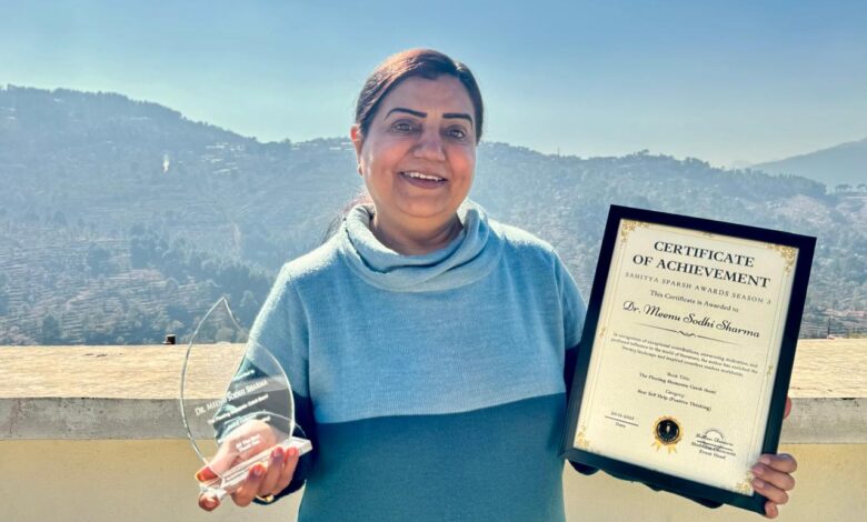 (राजेश कुमार) हरिद्वार। हरिद्वार के उपनगर कनखल की निवासिनी लेखिका डॉ. मीनू सोढ़ी शर्मा को उनकी पुस्तक “द फ्लीटिंग मोमेंट्स: कैच देम।” के लिए सर्वश्रेष्ठ स्वसहायता श्रेणी में प्रतिष्ठित साहित्य स्पर्श पुरस्कार से सम्मानित किया गया है। लेखिका का उद्देश्य है कि सभी पाठक जीवन के विभिन्न पहलुओं के प्रति नकारात्मकता, स्वार्थ और उदासीनता को त्यागकर एक सार्थक और सकारात्मक जीवन जीने का मार्ग चुनें।उनके अनुसार आशावाद ही जीवन का मूलमंत्र होना चाहिए। यह उल्लेखनीय है कि इस पुस्तक में लेखिका ने विभिन्न प्रकार के लोगों द्वारा अपने सांसारिक जीवन में अपनाए जाने वाले जीवन के विभिन्न मार्गों का विश्लेषण करने का प्रयास किया है। कुछ मार्ग सकारात्मक हैं, जबकि अन्य काफी नकारात्मक हैं। लेखिका ने पाठकों के साथ एक गहन दृष्टिकोण साझा किया है। यह एक अत्यंत रोचक पुस्तक है क्योंकि लेखिका प्रत्येक विकल्प के परिणाम पर चर्चा करती हैं। यह पुस्तक हमारे जीवन जीने के विभिन्न विकल्पों को सरल और सच्चे ढंग से प्रस्तुत करती है! इसमें साझा किए गए अनुभव अत्यंत ईमानदार, सच्चे और हृदयस्पर्शी हैं, क्योंकि इन्हें बेहद संवेदनशीलता से वर्णित किया गया है। यह पुस्तक साहित्य जगत में एक उत्कृष्ट योगदान है।