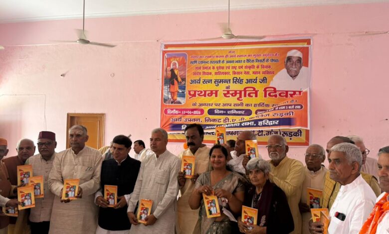 (चिराग कुमार) हरिद्वार। आर्य समाज के पुरोधा एंव राष्ट्र धर्म संस्कृति के चिंतक, आदर्श शिक्षक, साहित्यकार, किसानो के मसीहा, महान व्यक्तित्व आर्यरत्न स्व. श्रद्धेय सुमन्त सिंह आर्य की प्रथम स्मृति दिवस के अवसर पर आर्य प्रतिनिधि सभा हरिद्वार द्वारा आर्य उपवन रुड़की में स्मृति सभा का आयोजन किया गया।
