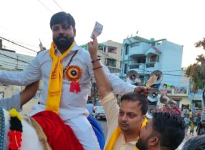 उन्होंने कहा कि महर्षि वाल्मीकि का जीवन इस बात का प्रेरणा स्रोत है कि मनुष्य चाहे कितनी भी विपरीत परिस्थितियों में में क्यों ना हो वह आत्मज्ञान और प्रयास से महानता की ऊंचाइयों तक पहुंच सकता है। उन्होंने कहा कि इस प्रकार के आयोजनों से समाज में एकता और भाईचारा बढता है। शोभा यात्रा नगर के विभिन्न स्थानों से गुजरी, जहां श्रद्धालुओं पर लोगों द्वारा पुष्प वर्षा की गई। इस दौरान शोभायात्रा में धार्मिक उल्लास, सामाजिक सौहार्द और सांस्कृतिक सभ्यता देखने को मिली। भगवान वाल्मीकि के जयघोष के साथ शोभायात्रा में शामिल ढोल नगाड़ों तथा बैंड बाजों और भजन कीर्तन से वातावरण भक्तिमय हो गया। संयोजक रवि चौटाला तथा समिति के सदस्यों ने भाजपा जिला महामंत्री अक्षय प्रताप सिंह का सम्मान किया।