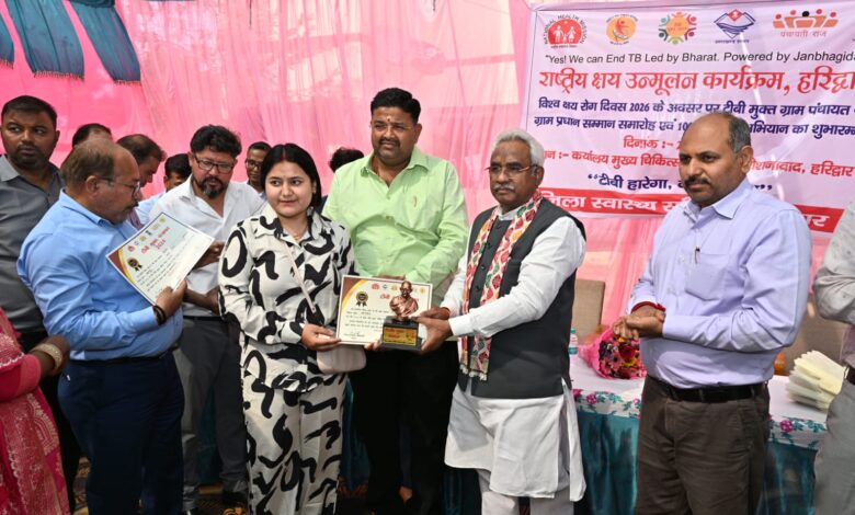 (नीटू कुमार) हरिद्वार। विश्व क्षय रोग दिवस 2026 के अवसर पर राष्ट्रीय क्षय उन्मूलन कार्यक्रम के तहत जनपद हरिद्वार में टीबी उन्मूलन की दिशा में महत्वपूर्ण कदम उठाए गए। रोशनाबाद कार्यालय मुख्य चिकित्साधिकारी परिसर में आयोजित “टीबी मुक्त ग्राम पंचायत–ग्राम प्रधान सम्मान समारोह एवं 100 दिवसीय विशेष अभियान” का उद्घाटन मुख्य अतिथि कैबिनेट मंत्री मदन कौशिक ने किया।