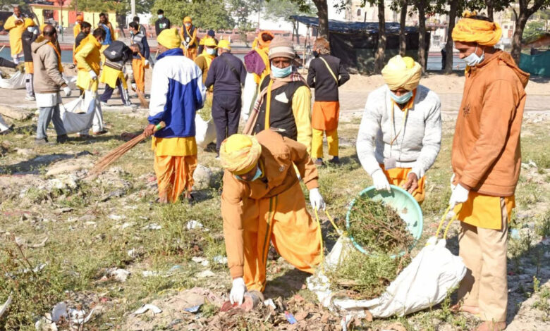 शांतिकुंज के सैकड़ों साधकों ने किया गंगा घाटों की वृहत सफाई, कई टन कचरा हटाया