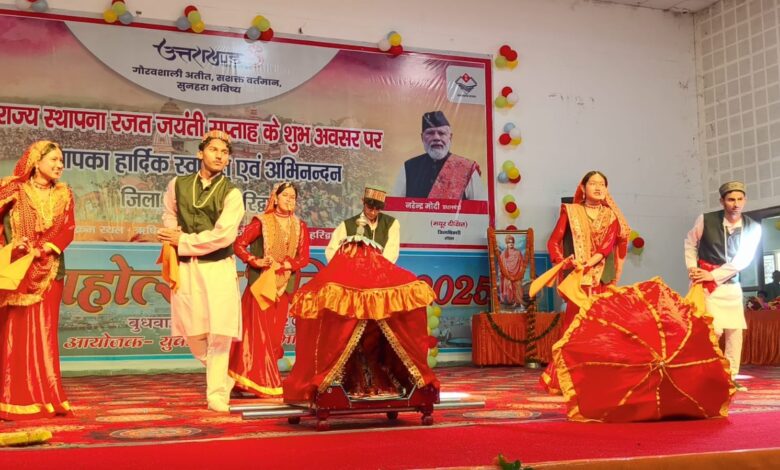 (नीटू कुमार) हरिद्वार। उत्तराखंड राज्य के 25 गौरवशाली वर्ष पूर्ण होने के उपलक्ष्य में मुख्यमंत्री पुष्कर सिंह धामी के निर्देशन में प्रदेश भर में रजत जयंती उत्सव कार्यक्रम आयोजित किए जा रहे है,जनपद हरिद्वार में रजत जयंती सप्ताह के अंतर्गत जिला अधिकारी मयूर शिक्षित के कुशल नेतृत्व एवं निर्देशन में जनपद में विभिन्न कार्यक्रम आयोजित किए जा रहे है। आज आयोजित कार्यक्रमों की श्रृंखला में युवा कल्याण विभाग के तत्वाधान मे ऋषिकुल आयुर्वेदिक महाविद्यालय ऑडिटोरियम में युवा महोत्सव सांस्कृतिक कार्यक्रम प्रतियोगिता का आयोजन किया गया, जिसका शुभारंभ हरिद्वार सासंद एवं पूर्व मुख्यमंत्री त्रिवेंद्र सिंह रावत ने रिबन काटकर व दीप प्रज्वलित कर किया।