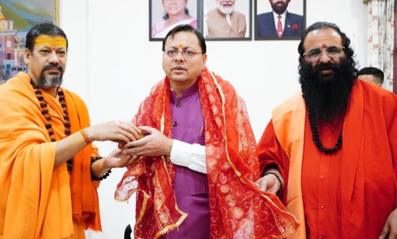 संतों ने की उत्तराखंड मुख्यमंत्री से मुलाकात, तीनों संतों ने मुख्यमंत्री को दिया आशीर्वाद