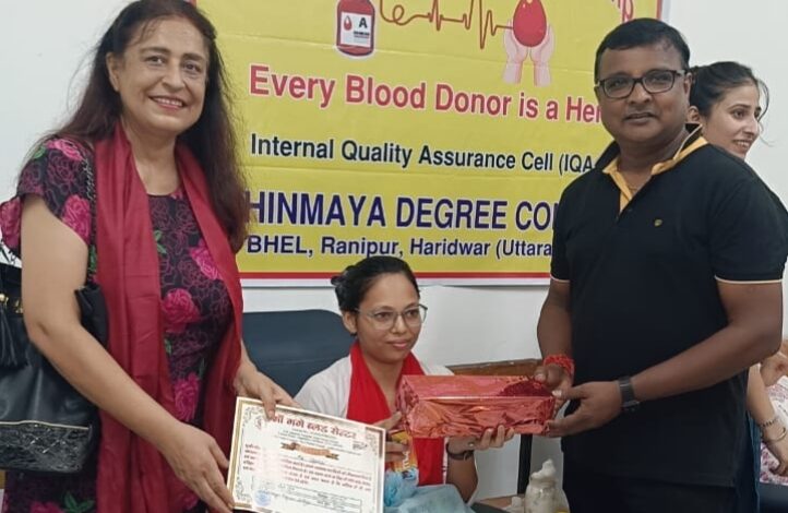 (गगन शर्मा) हरिद्वार। रोटरी क्लब जो कि समय-समय पर जनहित को लेकर कई कार्यक्रमों का आयोजन करते आ रहे हैं, आज इसी कड़ी में चिन्मय डिग्री कॉलेज में रोटरी क्लब हरिद्वार के सौजन्य से रक्तदान शिविर का आयोजन किया गया। कैंप का शुभारंभ आलोक शुक्ला सचिव चिन्मय डिग्री कॉलेज, प्राचार्य डॉ आलोक अग्रवाल और रानीपुर विधायक आदेश चौहान ने संयुक्त रूप से किया।
