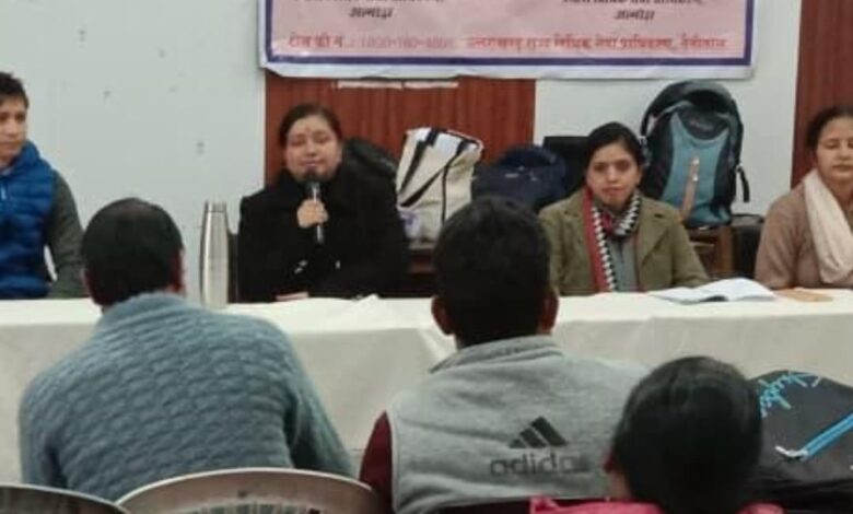 (राजेश कुमार) अल्मोड़ा। उत्तराखण्ड राज्य विधिक सेवा प्राधिकरण, नैनीताल के निर्देशन एवं अध्यक्ष, जिला विधिक सेवा प्राधिकरण अल्मोड़ा श्रीकांत पाण्डेय के मार्गदर्शन में शचि शर्मा सचिव, जिला विधिक सेवा प्राधिकरण अल्मोड़ा द्वारा अल्पसंख्यक अधिकार दिवस व नालसा आशा एस.ओ.पी के अनुक्रम में रैमजे इंटर कॉलेज अल्मोड़ा में 5 दिवसीय बुनियादी साक्षरता व संख्या ज्ञान सेवारत प्रशिक्षण प्राथमिक हवालबाग कार्यक्रम में विधिक जागरूकता शिविर का आयोजन किया गया।जागरूकता शिविर का आरम्भ नालसा थीम गीत एक मुठ्ठी आसमान चलाकर किया गया। उपस्थित अध्यापकगणों को अल्पसंख्यक समुदाय के व्यक्तियों के कानूनी अधिकार, कल्याणकारी योजनाओं, राष्ट्रीय अल्पसंख्यक आयोग, बाल विवाह प्रतिषेध, जिला विधिक सेवा प्राधिकरण के कार्यों,बच्चो व महिलाओं के अधिकार, निःशुल्क विधिक सहायता, चाईल्ड लाइन नंबर 1098, नालसा हेल्पलाइन नंबर 15100, पुलिस हेल्पलाइन नंबर 112, श्रमिको के अधिकारों आदि के विषय में जागरूक किया गया व पंफ्लेट वितरित किये गए।शिविर में सन्दर्भ दाता सी.पी आर्या, महेन्द्र सिंह रावत, हीरा चिलकोटी व अधिकार मित्र उपस्थित रहें।
