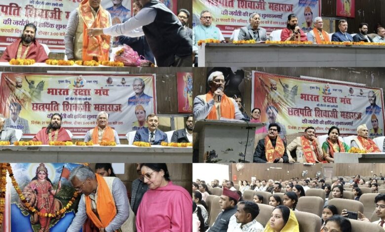 (इमरान देशभक्त) रुड़की। भारत रक्षा मंच द्वारा छत्रपति शिवाजी महाराज की 396-वीं जयंती पर नगर निगम सभागार में आयोजित कार्यक्रम में बतौर मुख्य अतिथि के रूप में बोलते हुए पूर्व मुख्यमंत्री एवं हरिद्वार लोकसभा के सांसद त्रिवेंद्र सिंह रावत ने कहा कि शिवाजी महाराज ने जिस प्रकार की राज सत्ता स्थापित की, वह भारत के इतिहास में स्वर्ण अक्षरों में अंकित हो गई। उन्होंने राष्ट्र तथा सनातन की रक्षा के लिए मुगलों से गोरिल्ला वार की तर्ज पर संघर्ष किया, हालांकि शिवाजी महाराज के पास सीमित संसाधन के बावजूद उन्होंने लाखों की मुगलों की फौज तथा बड़ी संख्या में शस्त्रों से लैस मुगली सेना को झुकने पर मजबूर कर दिया। आज हमें उनके आदर्शों से प्रेरणा लेकर राष्ट्र की मजबूती के लिए एकजुट होना होगा। हमारे देश के सामने आज अनेक चुनौतियां मौजूद हैं, जिसका मुकाबला केवल हमें संगठित होकर करना होगा। विशिष्ट अतिथि के रूप में बोलते हुए स्वामी लोकेश जी महाराज ने कहा कि छत्रपति शिवाजी महाराज का जीवन राष्ट्रभूमि को समर्पित रहा। छत्रपति शिवाजी एक ऐसे महान योद्धा थे जिन्होंने राष्ट्र को सुरक्षित रखने के लिए संघर्ष किया था कभी हार नहीं मांगी और मुगलिया सल्तनत के दांत खट्टे किए। कार्यक्रम का शुभारंभ मुख्य अतिथि द्वारा दीप प्रज्वलित कर किया गया। भारत रक्षा मंच की प्रदेश अध्यक्ष रश्मि चौधरी तथा महामंत्री अजीत सिंह के संचालन में हुए कार्यक्रम में दर्जा प्राप्त राज्य मंत्री श्यामवीर सैनी, विधायक प्रदीप बत्रा, कर्नल विशाल रोशनिया, भाजपा जिला महामंत्री अक्षय प्रताप सिंह, मेयर अनीता देवी अग्रवाल आदि ने भी संबोधित किया। इस अवसर पर संजीव कुमार कौशिक एडवोकेट, सुभाष सरीन, दिनेश पंवार, अशोक शर्मा, ललित मोहन अग्रवाल, चौधरी धीर सिंह, सेवानिवृत सूबेदार मेजर मेहरबान भंडारी, अफजल मंगलौरी, आशा धसमाना, धीरज पाल,डॉक्टर नवनीत सिंह, अशोक शर्मा, डॉक्टर सुभाष, शिवम अग्रवाल पार्षद, संजय प्रजापति, रश्मि गुप्ता, सरस्वती रावत, निर्मला देवी, अनूप बंसल, विजयपाल, डॉक्टर कुलदीप रघुवंशी, प्रवीण गोयल, अनुज त्यागी, मदन, कुलदीप व अमरीश आदि प्रमुख रूप से मौजूद रहे।