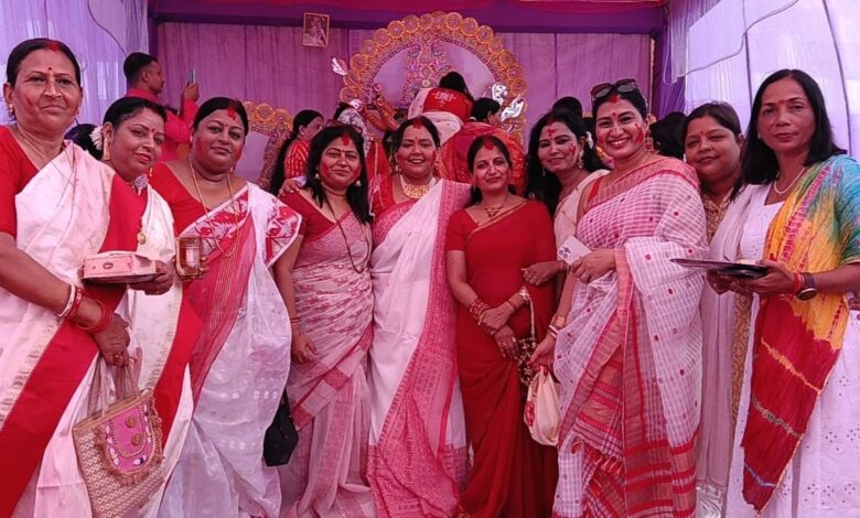 नगर निगम परिसर में दुर्गा पूजा के अंतिम दिन नारी शक्ति में सिंदूर खेला से बनाया विजय पर्व