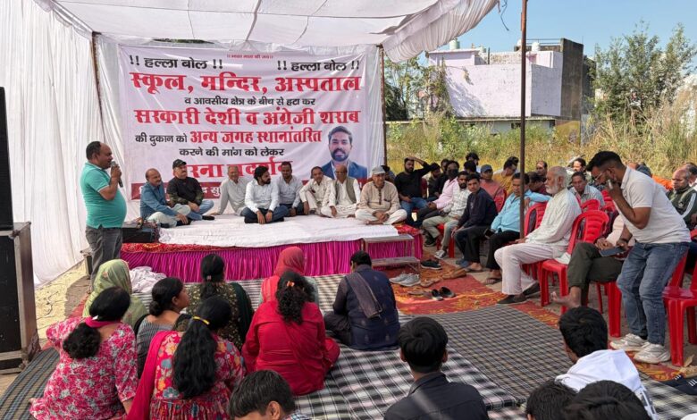 (राजेश कुमार) हरिद्वार। उत्तराखंड जहां आज राज्य स्थापना दिवस पर राजधानी देहरादून के साथ ही प्रदेश भर में भव्य कार्यक्रम आयोजित किए गए, तो वहीं हरिद्वार कनखल थाना क्षेत्र शराब के ठेकों को हटाए जाने को लेकर स्थानीय लोगों ने अनशन कर जमकर विरोध किया गया। वहीं जगजीतपुर पार्षद सुमित त्यागी ने बताया कि कनखल थाना क्षेत्र जगजीतपुर में लक्सर रोड पर शराब की दुकानें हैं जहां आस पास स्कूल, मन्दिर हॉस्पिटल हैं। जिससे स्थानीय लोगों के साथ ही मंदिर स्कूल हॉस्पिटल आने जाने वाले लोगों के लिए बड़ी दिक्कत रहती है। वहीं मेन रोड पर शराब की दुकान के कारण स्कूल के बच्चों पर भी गलत प्रभाव पड़ रहा है। तो वहीं शाम के समय बाजार जाने वाली आस पास की महिलाओं को भी दिक्कत का सामना करना पड़ता है। अनशन पर बैठे लोगों द्वारा शराब की दुकानों को हटाए जाने का विरोध करते हुए जिला प्रशाशन से मांग की गई कि अंग्रेजी शराब व देशी शराब के ठेकों को स्कूल, मंदिर हॉस्पिटल व आबादी क्षेत्र से दूर स्थानांतरित करना चाहिए। जिससे जगजीतपुर क्षेत्र में शान्ति व्यवस्था बनी रहे। अनशन पर बैठे लोगों में एडवोकेट सुमित त्यागी पार्षद जगजीतपुर, अभिषेक भाटी, सागर सैनी, एडवोकेट सौरभ सिंह, आशीष चौधरी, बादल त्यागी, केतन त्यागी, जगदीश पाल, राहुल सैनी, भूपेंद्र चौधरी, अरविंद शर्मा, श्रीकांत, राजन, विकास, विकास राजपूत, विवेक चौहान, राजीव सैनी, उमराव, मानसी, गोपाल, दिलीप गुप्ता,पार्षद विक्की भूषण, पार्षद हिमांशु गुप्ता, पार्षद पुनीत कुमार, पार्षद इदरीश मंसूरी, पार्षद सोहित सेठी आदि शामिल रहे।
