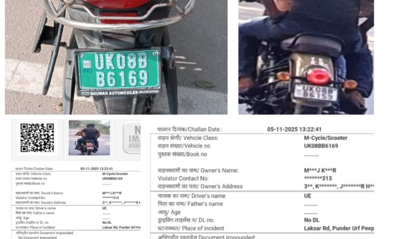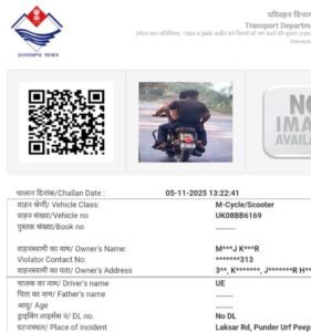 (रजत चौहान) हरिद्वार। जहां उत्तराखंड में यातायात व्यवस्था के साथ यातायात नियमों का पालन कराने के लिए पुलिस, परिवहन विभाग द्वारा ऑनलाइन चालान काटे जा रहे हैं तो वहीं ऑनलाइन चालान किसी-किसी वाहन स्वामी के लिए परेशानी का सबक बन रहे हैं, ओर मोबाइल फोन पर मैसेज देखते ही वाहन स्वामी के होश उड़ जाते हैं।