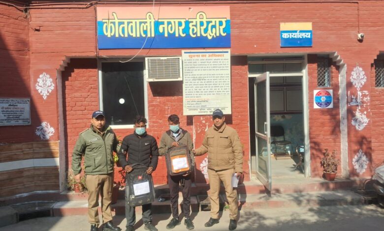 मुख्यमंत्री के ड्रग्स फ्री देवभूमि मिशन के तहत पुलिस मादक पदार्थों की तस्करी के खिलाफ लगातार अभियान चला रही है। इसी क्रम में बृहष्पतिवार को चेकिंग के दौरान पुलिस टीम ने एक ई रिक्शा पर शक होने पर रोककर रिक्शा चालक व उसके साथ बैठे व्यक्ति की तलाशी ली तो उनके पास मौजूद अलग-अलग बैग में गांजा बरामद हुआ। गांजा बरामदगी के आधार पर पुलिस ने एनडीपीएस एक्ट के तहत सौरव उर्फ पुष्पा पुत्र राजू निवासी गांव थाना हिडोलाखाल टिहरी गढवाल व हर्षित गुप्ता पुत्र अरविन्द निवासी प्रयागराज उत्तर प्रदेश हाल पता बैरागी कैम्प घोडा पुलिस लाईन काँलोनी के पास कनखल को गिरफ्तार कर लिया। पुलिस टीम में एसएसआई नंदकिशोर ग्वाड़ी, एसआई चरण सिंह चौहान, हेडकांस्टेबल सतेन्द्र, सजीव राणा, कांस्टेबल सुनील चौहान, निर्मल शामिल रहे।