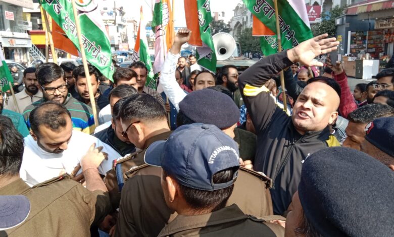 हरिद्वार नगर विधायक मदन कौशिक के कार्यालय का घेराव करने जा रहे कांग्रेसियों को पुलिस ने रोका