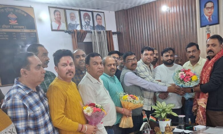 (नीटू कुमार) हरिद्वार। शिवालिक नगर व्यापार मंडल के अध्यक्ष के अध्यक्ष धर्मेंद्र विश्नाई के नेतृत्व में व्यापारियों के प्रतिनिधिमंडल ने जिले के नवनियुक्त पुलिस कप्तान नवनीत सिंह भुल्लर से भंेटकर उनका स्वागत किया और बधाई दी। इस दौरान व्यापार मंडल अध्यक्ष धर्मेंद्र बिश्नोई ने कहा कि नवनियुक्त एसएसपी नवनीत सिंह भुल्लर अनुभवी पुलिस अधिकारी हैं। उनके अनुभव का लाभ जनपद को मिलेगा और धर्मनगरी हरिद्वार सहित पूरे जिले में असामाजिक तत्वों पर लगाम लगेगी। कानून व्यवस्था बेहतर होगी। कानून व्यवस्था को बेहतर बनाने में व्यापारी भी पुलिस का पूर्ण सहयोग करंेगे। उन्होंने जनपद को अपराध मुक्त बनाने के लिए चलाए जा रहे सत्यापन अभियान की सराहना करते हुए कहा कि नशे के कारोबार पर सख्ती से रोक लगायी जाए और महिलाआंे के प्रति होने वाले अपराध के मामले में कड़ी से कड़ी कार्रवाई की जाए। प्रतिनिधि मंडल मंे विकास बाली, श्रवण बिश्नोई, सभासद हरिओम चौहान, अमित भट्ट, सुनील कुमार, तनुज अग्रवाल, आशीष पाठक, शंकर चौधरी, यशपाल गुप्ता, शिव नरेश शर्मा, धनाराम, सोनाराम, चौधरी जितेंद्र सिंह, राजूराम चौधरी, चुन्नीलाल सुरेश चौधरी आदि व्यापारी शामिल रहे