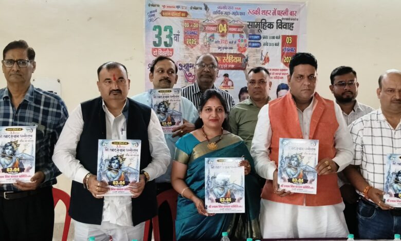 (इमरान देशभक्त) रुड़की। श्री श्याम मित्र मंडल समिति रजि० रुड़की द्वारा आगामी तीन व चार नवंबर से दो दिवसीय श्री खाटू श्याम जन्मोत्सव एवं वार्षिक महोत्सव का आयोजन रुड़की के नेहरू स्टेडियम में किया जाएगा। साकेत स्थित अग्रवाल धर्मशाला में आयोजित प्रेसवार्ता में जानकारी देते हुए समिति के पदाधिकारियों ने बताया कि इस 33-वें वार्षिक जन्मोत्सव में भजन गायक सौरभ शर्मा कोलकाता, विशाल शैली पटियाला व दिनेश बजरंगी रुड़की भजनों की सुंदर प्रस्तुति देंगे। समिति के पदाधिकारियों ने बताया कि तीन नवंबर को ग्यारह कन्याओं का सामूहिक विवाह समिति द्वारा संपन्न कराया जाएगा। राजेश गोयल रिंकू सिरसा द्वारा मंच संचालन किया जाएगा। प्रेसवार्ता में समिति की मुख्य संरक्षक व समाज सेविका पूजा गुप्ता, फोनिक्स यूनिवर्सिटी के चेयरमैन एवं समाजसेवी इंजीनियर चैरब जैन व मनोज वर्मा, मण्डल अध्यक्ष राहुल बंसल, अंकुर गोयल, पंकज गुप्ता, प्रेम अग्रवाल वरिष्ठ उपाध्यक्ष, मनीष प्रकाश, सचिन बंसल सचिव, अमित गुप्ता, आनंद पाल, संदीप अग्रवाल, सुल्तान सिंह यादव, योगेश गोयल, रजनीश गोयल व राजेश गोयल आदि प्रमुख रूप से मौजूद रहे।