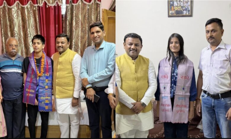 हाई स्कूल में शानदार अंक प्राप्त करने पर छात्र-छात्रा का किया सम्मान