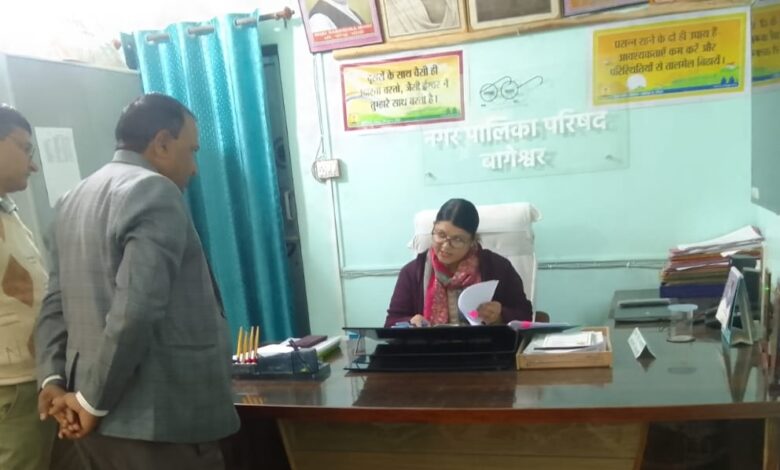 (राजेश कुमार) बागेश्वर। उपजिलाधिकारी प्रियंका रानी ने सोमवार को नगर पालिका परिषद कार्यालय का औचक निरीक्षण किया। उन्होंने विभिन्न पटलों की कार्यप्रणाली, प्रशासनिक व्यवस्थाओं और उपस्थिति पंजिका का गहन अवलोकन किया।