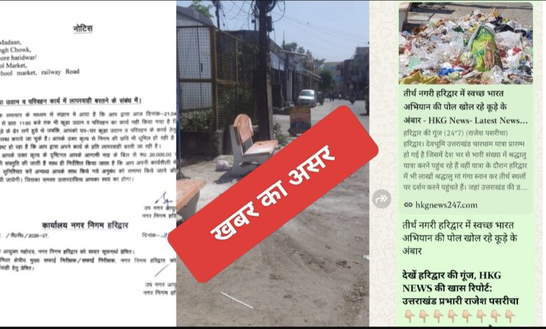 (राजेश पसरीचा) हरिद्वार। नगर निगम उपनगर आयुक्त ने हरिद्वार की गूंज, HKG NEWS पोर्टल में प्रकाशित हुई खबर का चंद घंटों में संज्ञान लेते हुए कूड़ा उठाने व परिवहन कार्य में लापरवाही बरतने पर कूड़ा उठाने वाली एक कंपनी को 20 हजार रूपए का जुर्माना लगाते हुए नोटिस भेजा है।