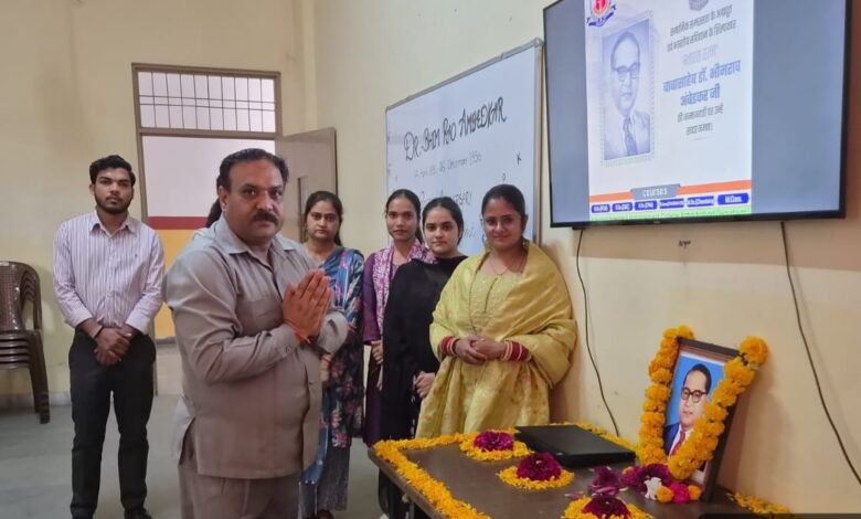 महाविद्यालय के प्राचार्य डॉ. राघवेंद्र चौहान ने कहा कि बाबा साहब का जीवन हमें यह सिखाता है कि परिस्थितियाँ चाहे कितनी भी कठिन क्यों न हों, यदि हमारे भीतर सीखने की लगन और आगे बढ़ने का साहस हो, तो हम हर बाधा को पार कर सकते हैं। उन्होंने विद्यार्थियों से उनके विचारों को अपने जीवन में अपनाने का आह्वान किया। उन्होंने यह भी कहा कि बाबा साहब का प्रसिद्ध संदेश—“शिक्षा ही सबसे बड़ा हथियार है”—आज भी युवाओं के लिए प्रेरणा का स्रोत है।।रसायन विज्ञान प्रवक्ता सिया पाल ने कहा कि डॉ. अंबेडकर ने भारतीय संविधान के माध्यम से देश को एक मजबूत आधार प्रदान किया, जिसमें सभी नागरिकों को समान अधिकार एवं न्याय का अधिकार मिला। उनका उद्देश्य एक ऐसा समाज बनाना था, जहाँ किसी के साथ जाति, धर्म या वर्ग के आधार पर भेदभाव न हो। प्रश्नोत्तरी प्रतियोगिता के परिणाम घोषित करते हुए उत्कृष्ट प्रदर्शन करने वाले प्रतिभागियों को पुरस्कृत किया गया। अनिका सिंह, राहुल दुबे, आदित्य चौहान, अमरजीत कमाटी एवं सौरव खरोला को प्रमाण पत्र एवं पुरस्कार देकर सम्मानित किया गया। महाविद्यालय की सचिव श्रीमती राजेश देवी ने प्रतिभागी छात्रों को शुभकामनाएं देते हुए उनके उज्ज्वल भविष्य की कामना की। इस अवसर पर प्रबंध समिति सदस्य दुष्यंत प्रताप, नितिन चौहान तथा प्रवक्तागण डॉ. दीक्षा चौहान, डॉ. अनिरुद्ध कुमार, प्रवीण कुमार, अजय कुमार, इशिका पंडित, विनीत कुमार, प्रिया सैनी, नैंसी चौहान, अरबाब राव, रवि कुमार, विशाखा सिंह एवं राजदेव रावत उपस्थित रहे।