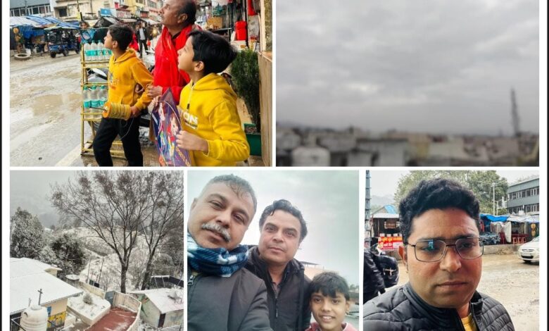 दूसरी ओर सीजन की पहली बर्फबारी, बर्फ की सफेद चादर में लिपटे पहाड़ देख झूमे पर्यटक
