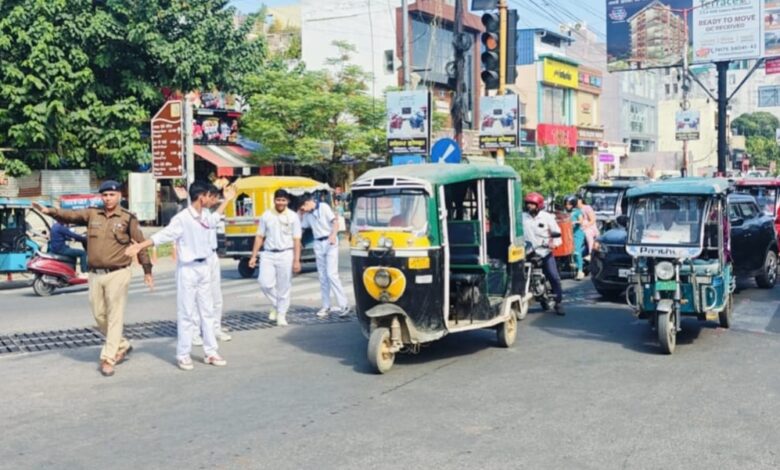 (गगन शर्मा) हरिद्वार। निदेशालय यातायात के निर्देश पर हरिद्वार वरिष्ठ पुलिस अधीक्षक के आदेशानुसार पुलिस अधीक्षक यातायात महोदय के निर्देशानुसार पुलिस उपाधीक्षक यातायात के नेतृत्व में शिवडेल पब्लिक स्कूल जगजीतपुर में एक यातायात जागरूकता संबंधी गोष्ठी का आयोजन किया गया। जिसमे उप निरीक्षक सीपीयू पवन नौटियाल, अपर उप निरीक्षक यातायात प्रदीप कुमार सिंह, आरक्षी यातायात मुकेश कंबोज द्वारा जिसमें छात्र एवं छात्रों को यातायात नियमों संबंधी जानकारी प्रदान की गई। उनको ट्रैफिक साइन, ट्रैफिक सिग्नल आदि की जानकारी दी गई। साथ ही बताया गया कि दुपहिया पर हमेशा हेलमेट का प्रयोग करें ट्रिपल राइडिंग ना करें वाहन चलाते समय मोबाइल फोन का प्रयोग ना करें, शराब पीकर वाहन न चलें, गोल्डन आवर गुड सेमीरिटर्न आदि सभी विषयों की जानकारी दी गई। इसके उपरांत और छात्र एवं छात्राओ को रानीपुर मोड़ चौक पर लाया गया, जहां उनके माध्यम से चौक का संचालन करवाया गया। जिसकी स्थानीय लोगों द्वारा यातायात पुलिस की इस पहल की भूरी भूरी प्रशंसा की गई। उक्त कार्यक्रम में विद्यालय के प्रधानाचार्य बंसल सर एवं अध्यापकगण मौजूद रहे।
