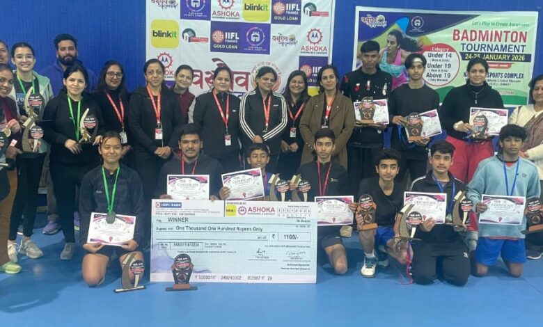 (नीटू कुमार) हरिद्वार। वसुधैव कुटुंम्बकम् फाउंडेशन रजि. द्वारा आयोजित डबल बैडमिंटन टूर्नामेंट 3.0 का आयोजन हरिद्वार स्पोर्ट्स कांप्लेक्स में किया गया। जिसमें अंडर 14, अंडर 19 मेल और फीमेल दोनों और अबोव 19 कैटिगरीज में केवल महिला के द्वारा 80 खिलाड़ियों ने भाग लिया।