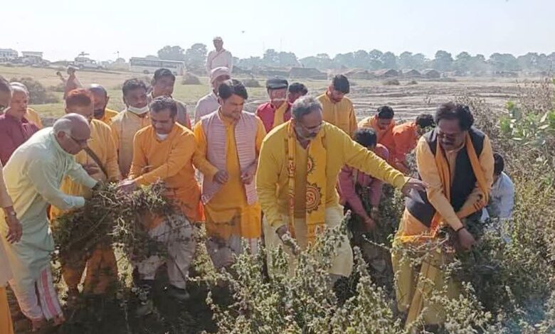 बताते चलें कि आज प्रात: से ही शांतिकुंज के कार्यकत्र्ताओं में जबरदस्त उत्साह था। वे सभी गायत्री महामंत्र का गान व प्रज्ञागीत गाते हुए अनुशासित ढंग से बैरागी द्वीप पहुंचे। यहाँ आठ सेक्टर में बांटे गये करीब डेढ़ किमी की परीधि को शांतिकुंज कार्यकत्र्ता भाई बहिनों सहित विभिन्न प्रशिक्षण व साधना सत्रों में आये साधकों ने फावड़ा, रेती आदि से झाड़ झंखाड, कूड़े-करकट को साफ किया, तो वहीं तीन जेसीबी मशीनों को समारोह स्थल को समतलीकरण के लिए लगाया गया है। श्रमदान, सेवादान प्रात: आठ बजे से प्रारंभ होकर दोपहर एक बजे तक चला।
